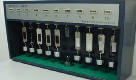 适用于压敏胶粘带、医用贴剂、不干胶标签、保护膜等产品进行持粘性测试试验。把贴有胶粘试样的试验板垂直吊挂在试验架上,下端悬挂规定重量的砝码,用一定时间后试样粘脱的位移量,或试样完全脱离的时间来表征胶粘试样抵抗拉脱的能力。